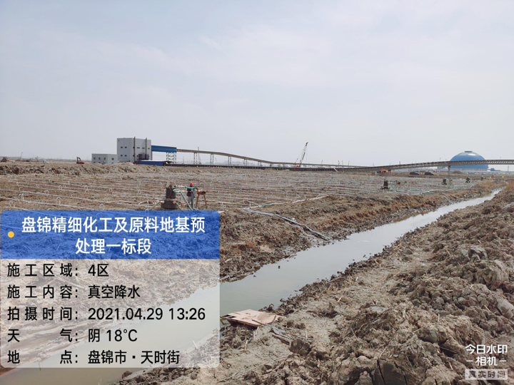 本項目為兵器工業(yè)集團精細化工及原料工程項目廠區(qū)地基預處理施工 (一標段),位于遼寧省盤錦市遼東灣新區(qū),場地行政區(qū)劃隸屬盤錦市大洼區(qū)榮興鎮(zhèn)。工程總地基處理面積552451㎡,共分為一區(qū)和二區(qū),一區(qū)面積71080.92㎡;二區(qū)面積481371㎡,擬采用強夯、真空排水、挖溝排水措施方式進行處理。